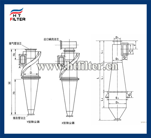含塵氣流經(jīng)收縮形進口切向進入除塵器蝸殼時,由上向下作螺旋形旋轉(zhuǎn)運動,塵粒在離心力的作用下被拋向器壁,并沿器壁下旋,進入特殊結(jié)構(gòu)的密封收塵裝置內(nèi);凈化后的氣體由下向上作內(nèi)螺旋形旋轉(zhuǎn)經(jīng)芯管排出。